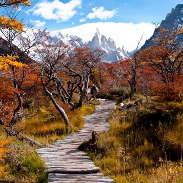 Esta excursão de dia inteiro inclui transfer guiado de El Calafate a El Chaltén na qual você pode explorar livremente a Capital Nacional do Trekking e desfrutar de vistas espetaculares do Cerro Fitz Roy e Cerro Torre. É ideal para os amantes da natureza pois poderão explorar de forma independente durante 5-6 horas as atrações que El Chaltén oferece. Você pode visitar mirantes naturais que oferecem belas vistas das colinas circundantes, rios, lagoas e trilhas pela floresta patagônica.