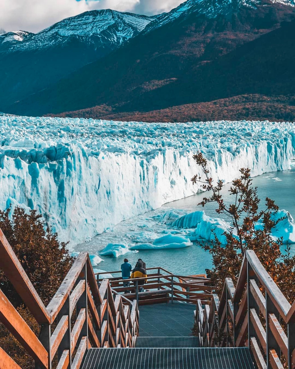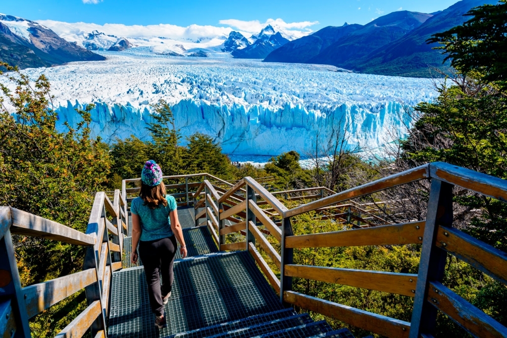 Uma vez dentro do Parque Nacional Los Glaciares, serão feitas paradas em pontos panorâmicos até chegar ao extremo oeste da Península de Magalhães, de onde começará a caminhada pelas passarelas. Estes têm uma extensão total de 5,5 km em diferentes níveis, permitindo contemplar o Perito Moreno de diferentes perspectivas e varandas. De lá, você pode se maravilhar com a frente do Glaciar Perito Moreno, apreciar seus vibrantes tons de azul, observar as imponentes paredes de gelo e ouvir os sons estrondosos do gelo que se quebra e cai na água, criando uma experiência sensorial única.