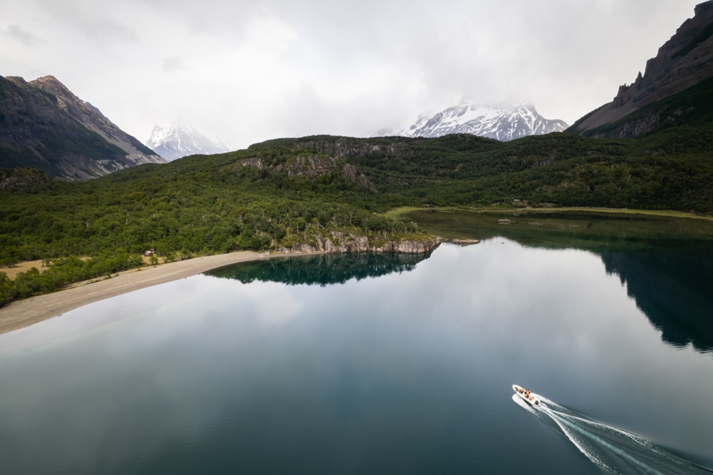Perto da Estância Nibepo Aike, você embarcará em um barco semirrígido para navegar pelo Braço Sul do Lago Argentino, seguindo em direção ao extremo sul do lago, onde desembarcará.