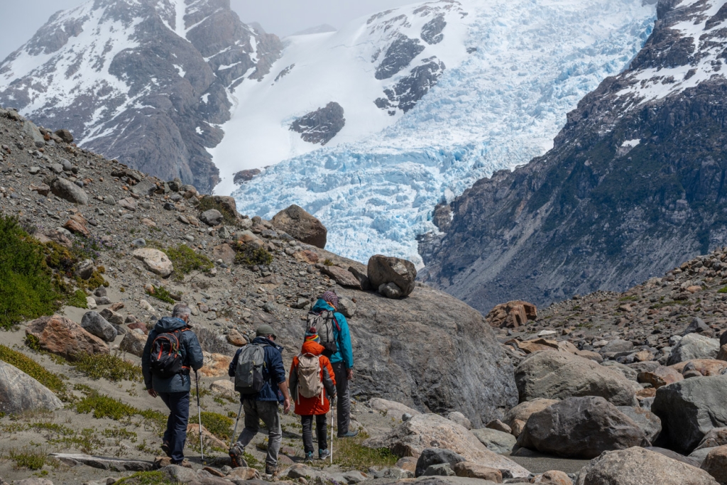Em terra firme, você entrará em uma área inexplorada fazendo um trekking exclusivo até o Lago Frías. Ao chegar, você embarcará novamente para cruzar até a margem oposta em um bote inflável motorizado e, finalmente, embarcará e fará outro trekking até o Glaciar Grande. A excursão Glaciar Sur Adventure inclui diversas rotas de trekking, totalizando 6 horas e 14 km de caminhada com pouco ganho de elevação.