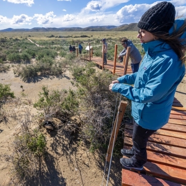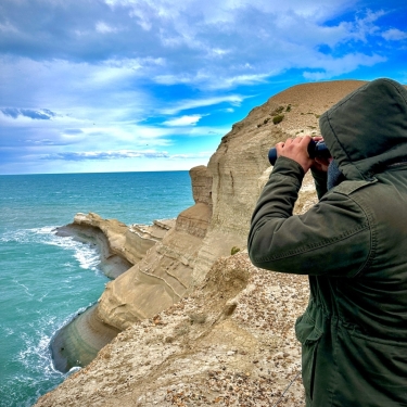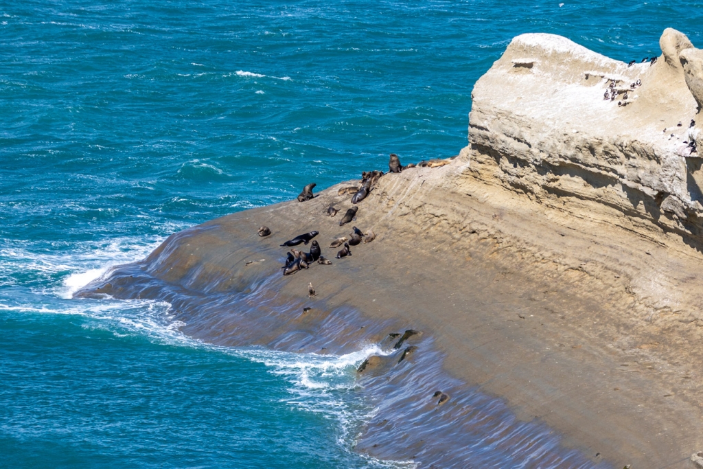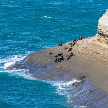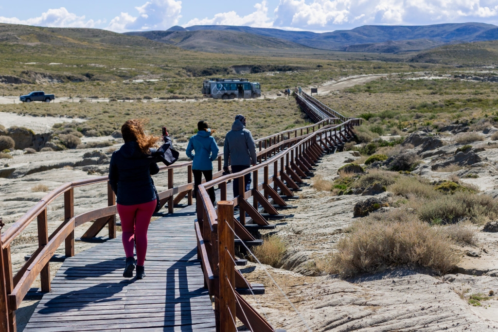 Após retornar ao Overland 4X4, a excursão continua em direção ao Sendero Lobería e Cabeza de León, onde você pode chegar à beira deste imponente penhasco que lembra um leão deitado e que dá nome ao Parque Nacional Monte León. Aqui você pode observar colônias de focas sul-americanas e, ocasionalmente, cetáceos como a baleia franca austral, o golfinho austral ou o golfinho de Commerson preto e branco.
