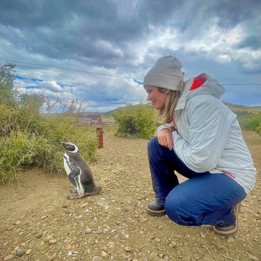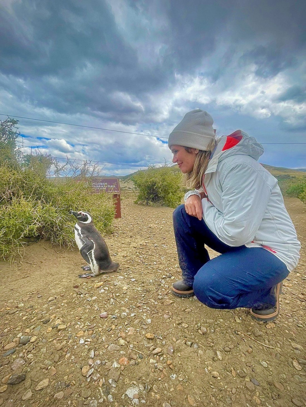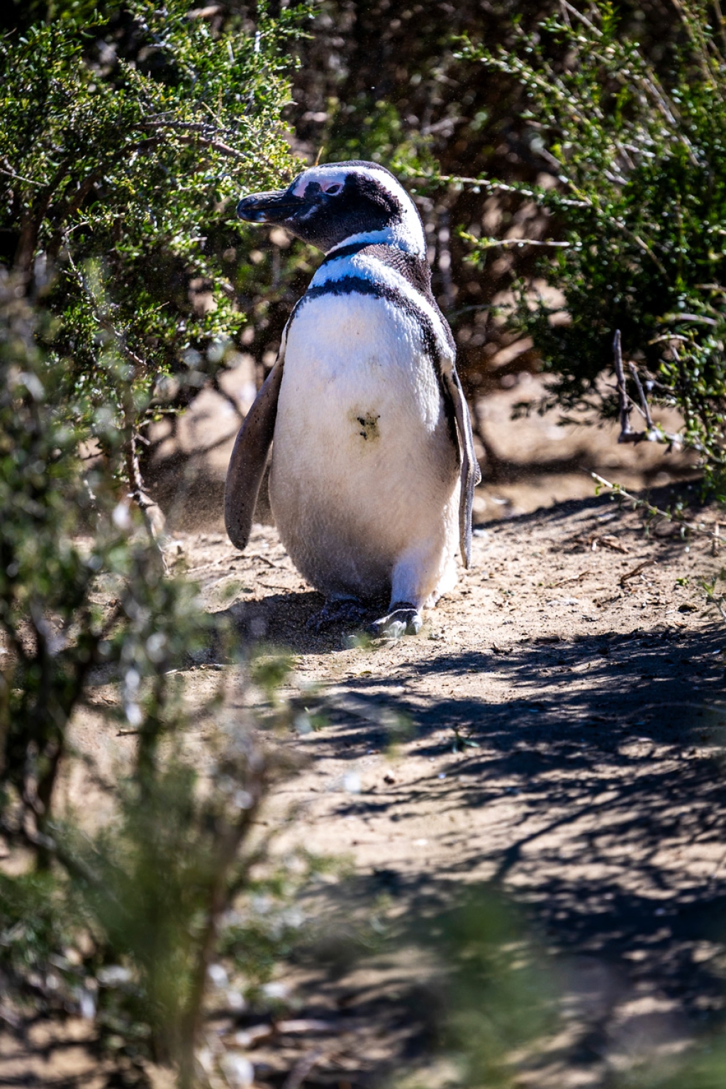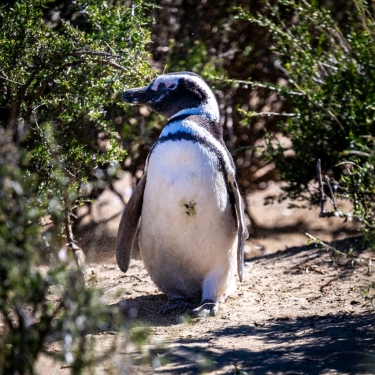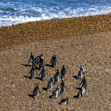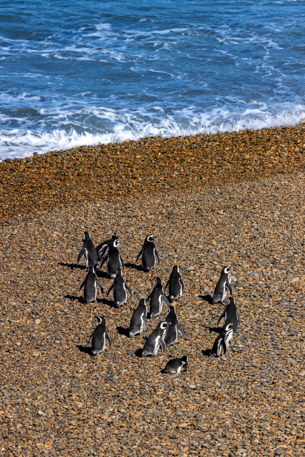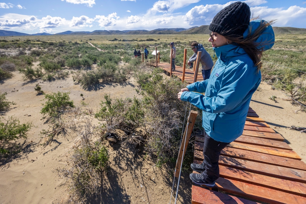 Por volta das 11:30 a.m. você chega ao Parque Nacional Monte León. Perto da costa, você fará uma caminhada de baixa dificuldade de 1,5 hora pela trilha da colônia de pinguins, onde poderá caminhar entre os pinguins e seus ninhos e observar toda a colônia do seu ponto de observação. O Parque Nacional Monte León tem a maior colônia de pinguins da Argentina.