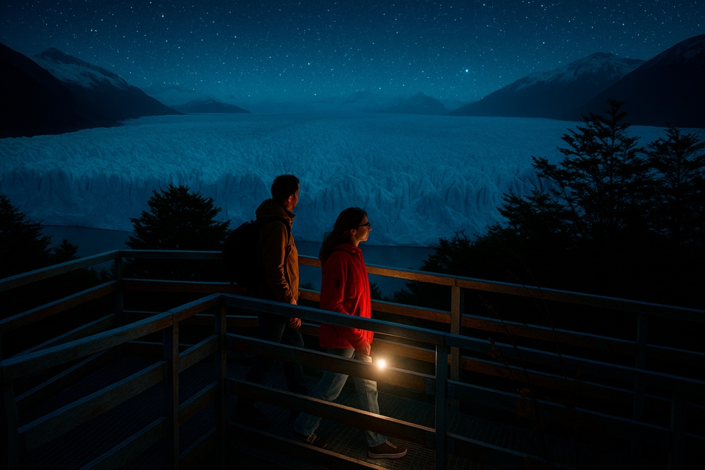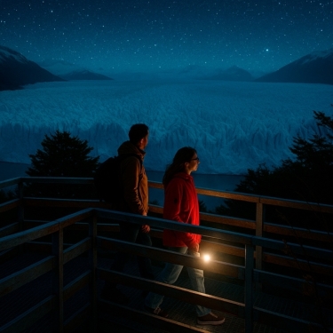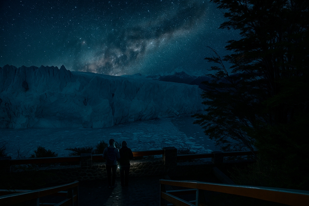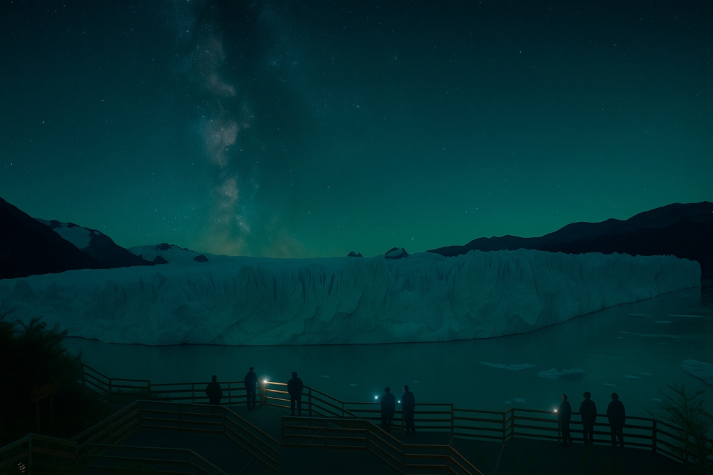 Perito Moreno Night Experience oferece uma experiência única não vista há 20 anos: caminhar pelas passarelas do Glaciar Perito Moreno sob a luz da lua cheia e das estrelas. Acompanhado por um astrônomo profissional, você aprenderá a ler o céu do sul, apreciará o reflexo da lua cheia e das estrelas no gelo do Glaciar Perito Moreno e fará light painting em um cenário mágico e incomparável. Você poderá combinar a grandiosidade do Perito Moreno com a magia do universo.
