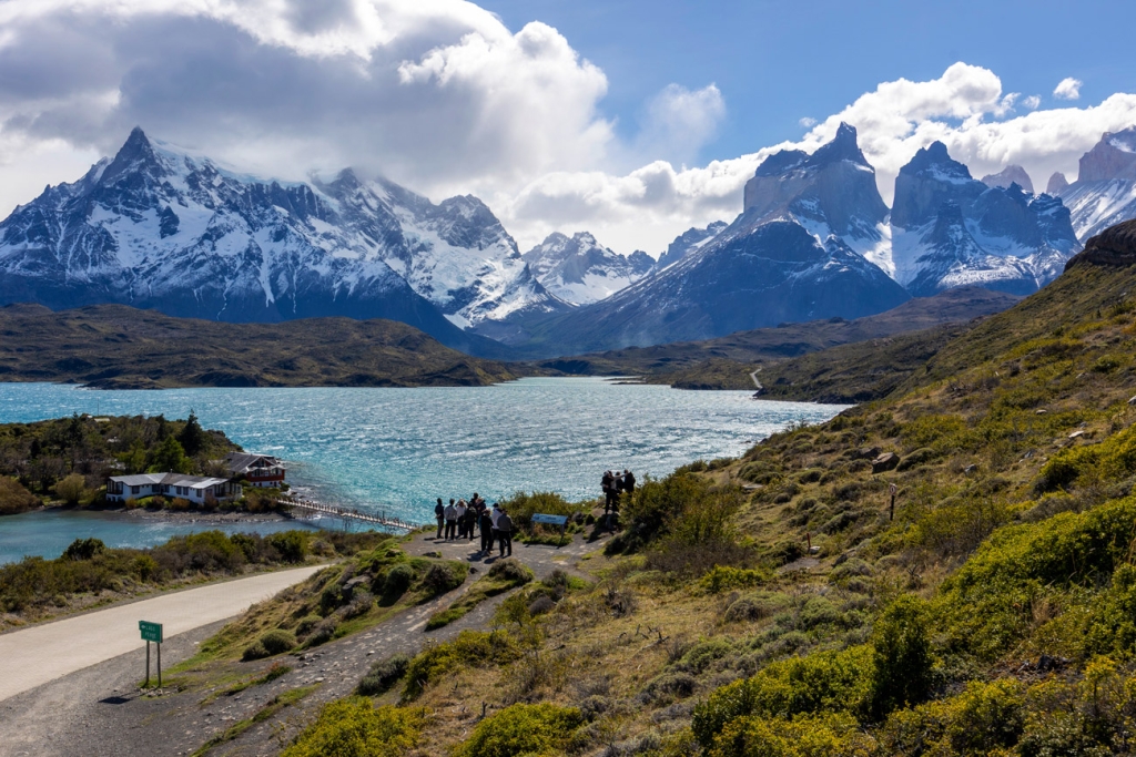Às 11:00 a.m., o veículo seguirá seu caminho em direção ao Parque Nacional Torres del Paine, chegando às 12:00 p.m. até a primeira atração que é Portería Río Serrano de onde você terá uma vista maravilhosa das Torres del Paine em frente e de onde você pode acessar o parque nacional. Depois de cruzar o portão, continue em direção à área de Pudeto, passando por Pehoe, onde você chegará aproximadamente às 1:30 p.m. Lá será realizado outro trekking guiado em direção à cachoeira Salto Grande com uma caminhada até o Mirador de los Cuernos del Paine, às margens do Lago Nordenskjold. Esta caminhada dura uma hora e meia, é de baixa dificuldade e lhe oferecerá uma das vistas mais famosas de Torres del Paine. Passageiros que não desejam fazer a caminhada podem esperar o grupo no veículo.